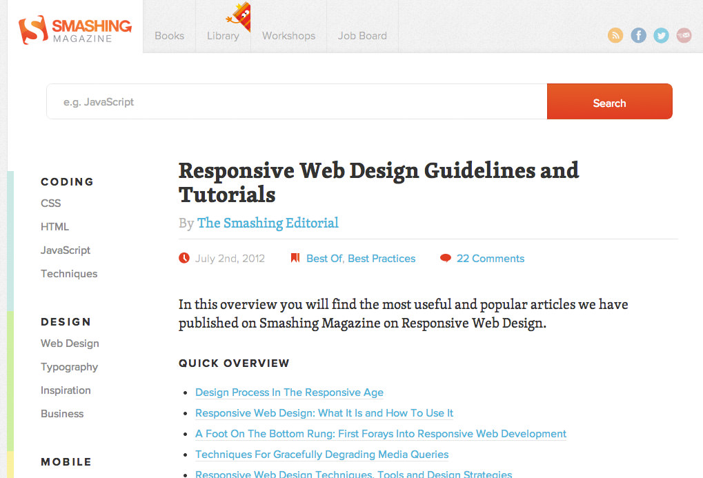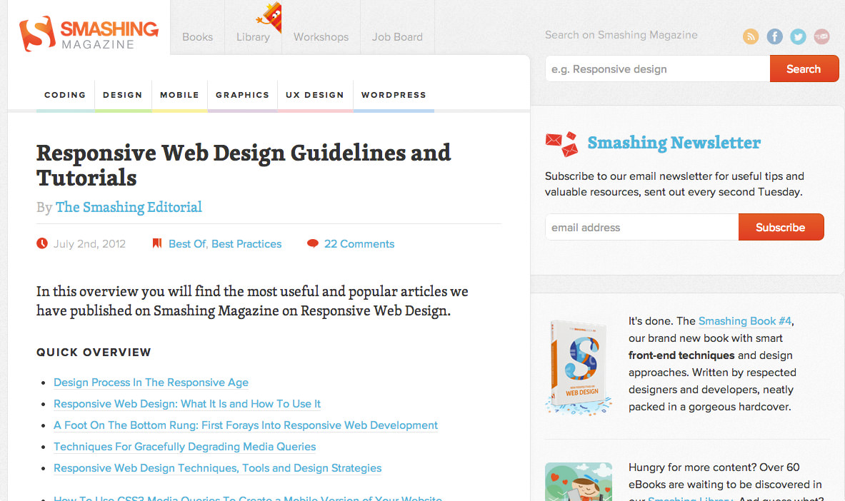 Чаще всего в качестве главного преимущества RWD-сайтов приводят их возможность адаптироваться под размер экрана. В качестве примера можно рассмотреть сайт Smashing Magazine