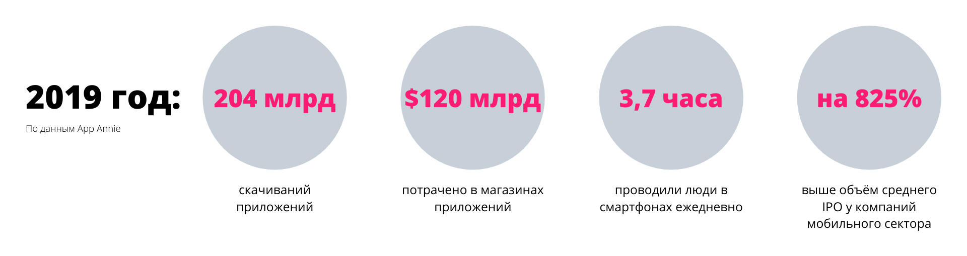 А ещё «мобайл» любят инвесторы. В 2018 году 80% из 48 IPO на биржах NYSE и NASDAQ были связаны с компаниями, которые ориентируются на пользователей смартфонов или непосредственно связаны с мобильными устройствами. Интерес инвесторов говорит о том, что в приложения вкладывают деньги, и появляется больше удобных сервисов, которые формируют у потребителя привычку пользоваться приложениями. Следовательно, рынок приложений продолжит устойчивое развитие, кризис только поддержит его, и люди чаще будут предпочитать сайтам удобный брендовый софт.