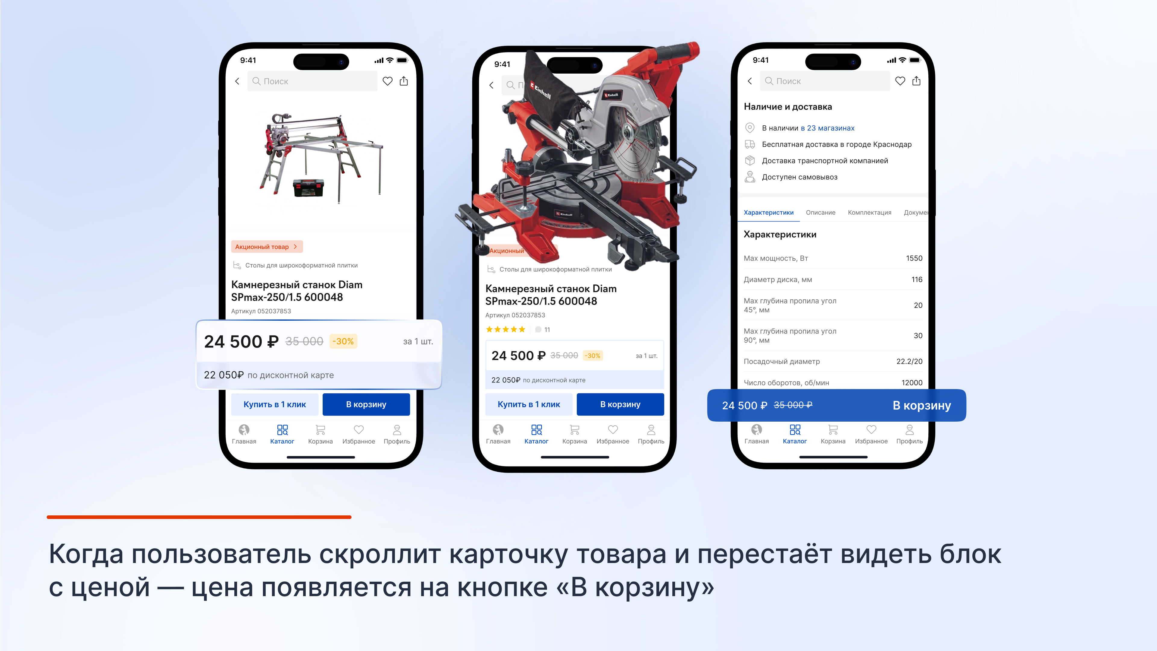 - Нам важно было спроектировать интерфейс таким образом, чтобы покупателю всегда демонстрировалась цена товара.