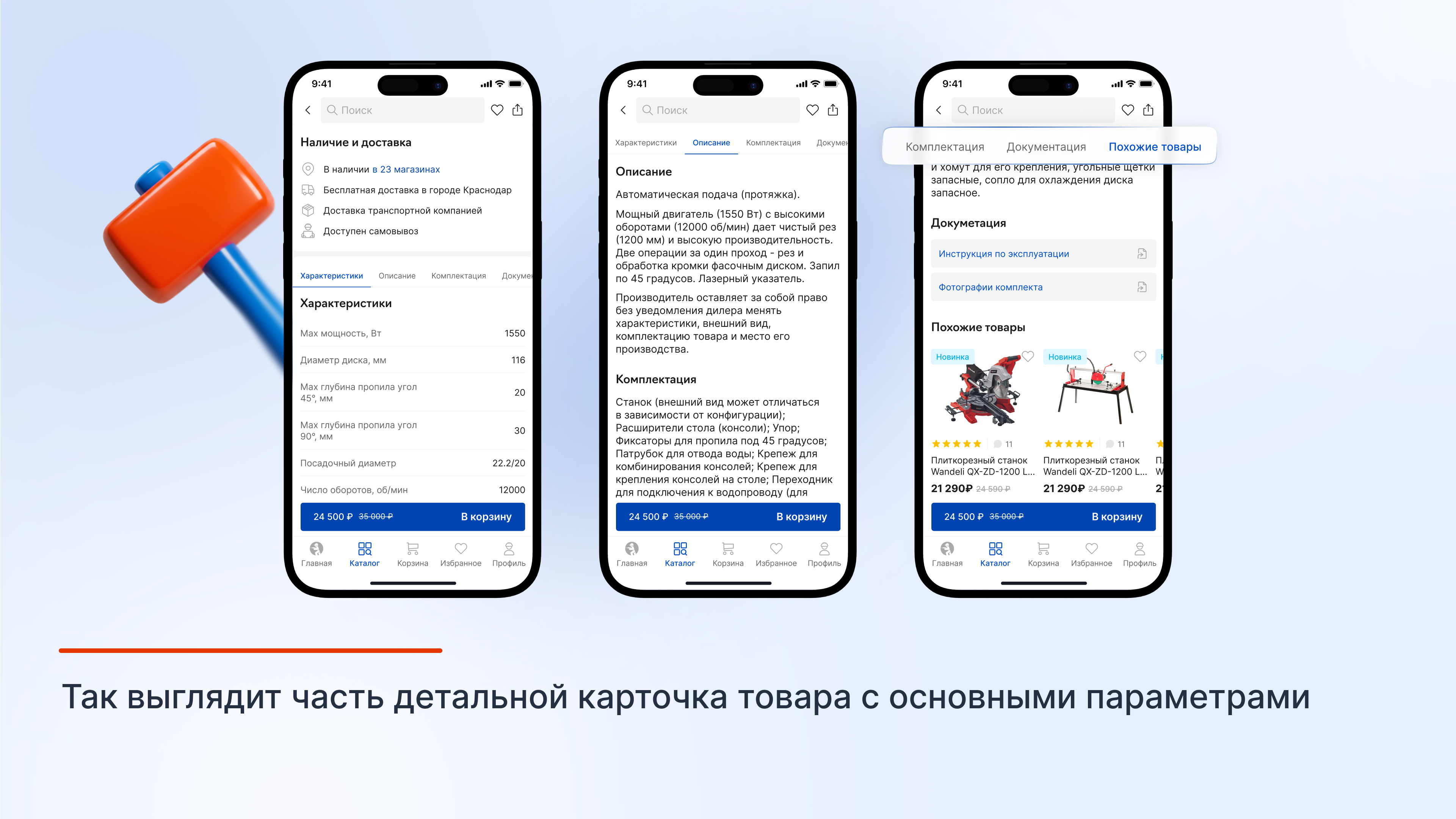 - В основную информацию мы добавили название, цену, наличие в магазинах, способы доставки и другие данные, на которые пользователи обычно смотрят в первую очередь.