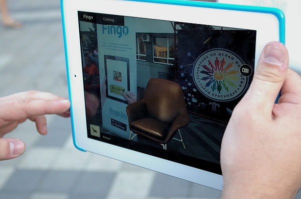 В-третьих, наша крутая разработка — мобильное приложение Fingo, которая позволяет «примерить» виртуальную мебель к реальному интерьеру, вышла в город на День города.