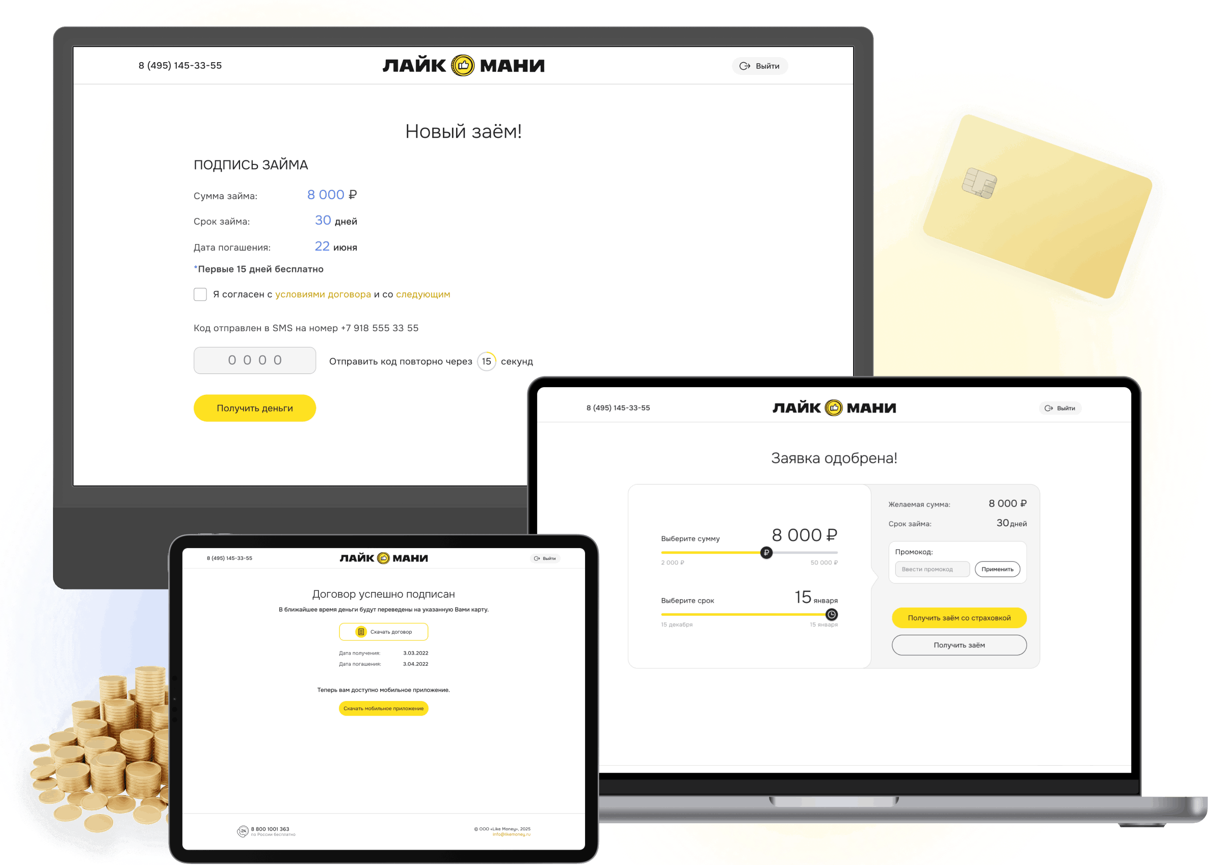 Для всех операций с заёмами — оформления, продления срока, увеличения суммы и других — требуется подтверждение от клиента в виде SMS-кода. Этот механизм защищает пользователя от ошибок и минимизирует риск столкновения с мошенниками