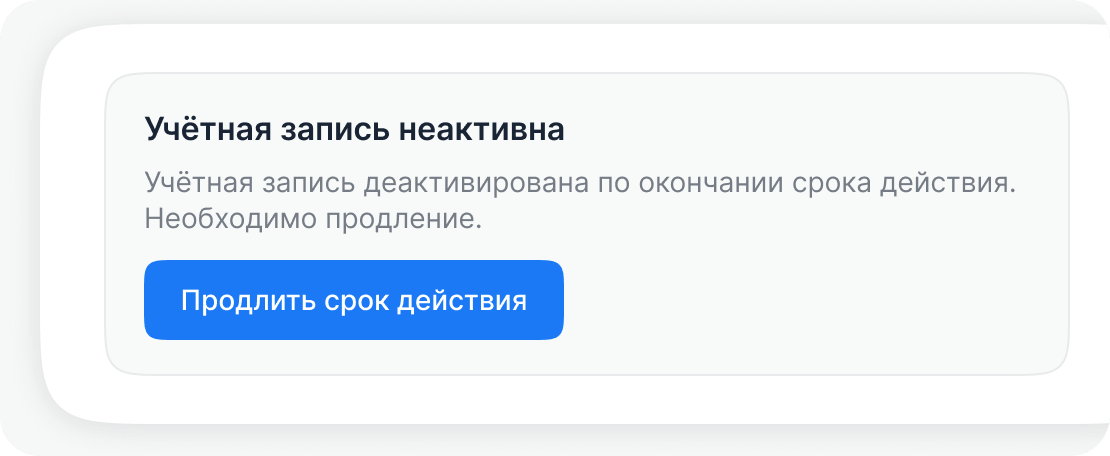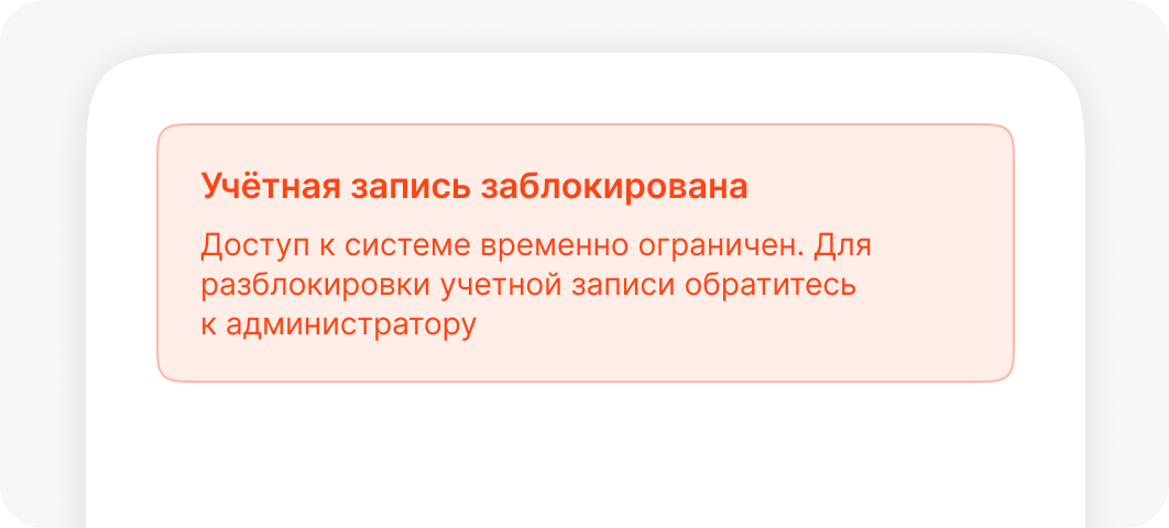Если администратор блокирует учётную запись, пользователь видит соответствующую надпись при авторизации. Пользователь вправе написать администратору с просьбой разблокировки