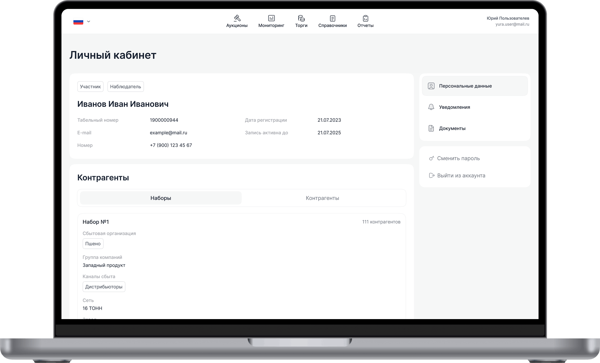 Оптимизировали логику разных ролей и проработали путь пользователя для роли внутреннего сотрудника, участвующего в торгах от лица нескольких контрагентов
