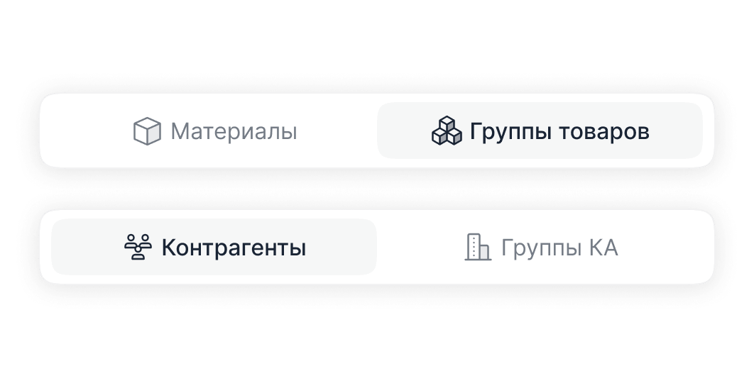 Группы можно создавать вручную или по характеристикам, например, по стране. При создании вручную контрагентов и материалы выбирают из списка или ищут через поиск в системе