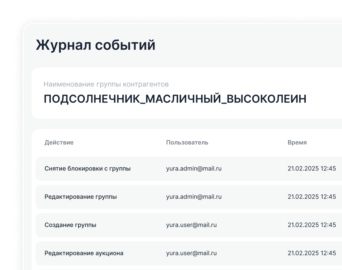 Добавили возможность создавать группы продукции и контрагентов: теперь можно создавать аукционы под конкретные группы юрлиц и выставлять нужные группы товаров, а не добавлять их вручную по одному