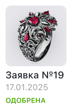- Предусмотрены статусы: «В обработке», «Одобрена», «Отклонена».